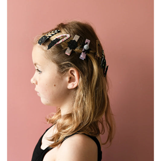 Rockahula Stripy Cat Clips – Fermagli Gatto Nero Glitter per Halloween