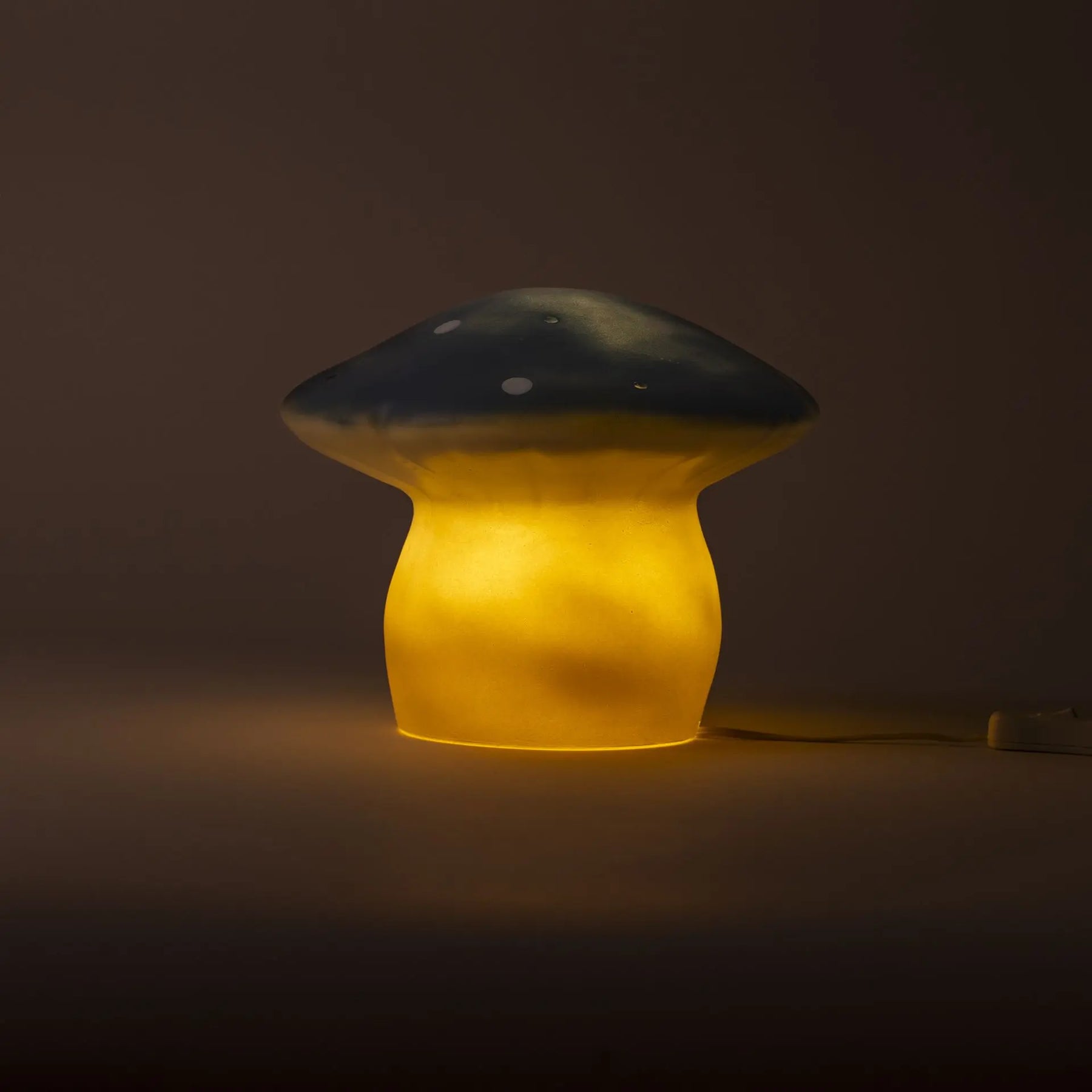 La lampada fungo medio color jeans di Heico by Egmont Toys è un complemento d’arredo incantevole che trasforma ogni cameretta in un piccolo bosco delle fiabe.