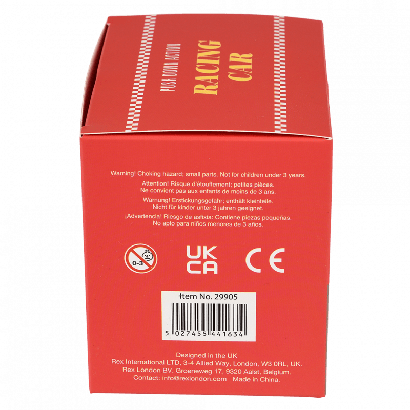 Una macchinina classica e divertente che corre via con un semplice gesto. Basta premere la testa del pilota e… via!