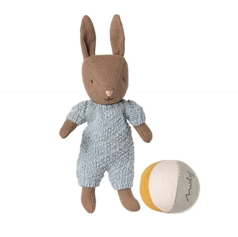 Maileg Set Coniglio Micro – Marrone e Blu con Magneti e Palla