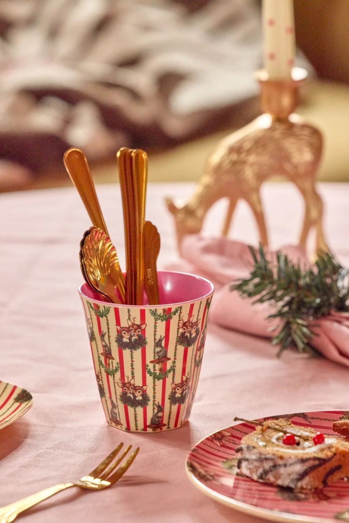 Scopri il fascino del bosco incantato con il bicchiere in melamina Rice decorato con la nuova stampa Sweet Forest, una fantasia dal tocco natalizio ma perfetta tutto l’anno. 🍄🌲
