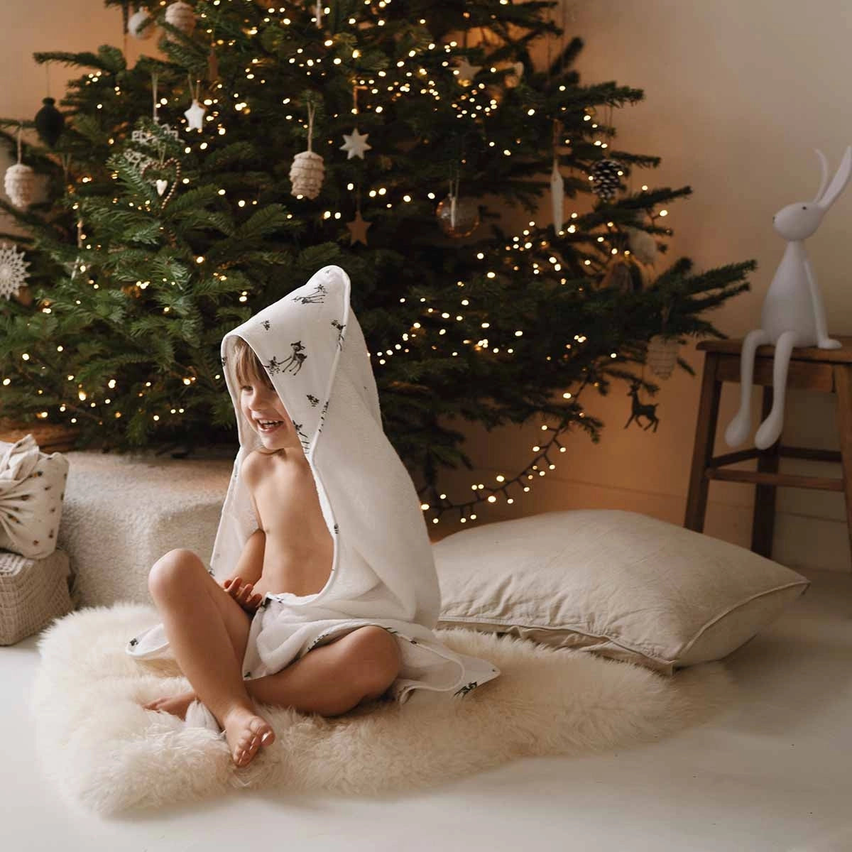 Avvolgi il tuo bambino in una nuvola di morbidezza con la baby bath cape Colette firmata Rose in April. 🦌✨